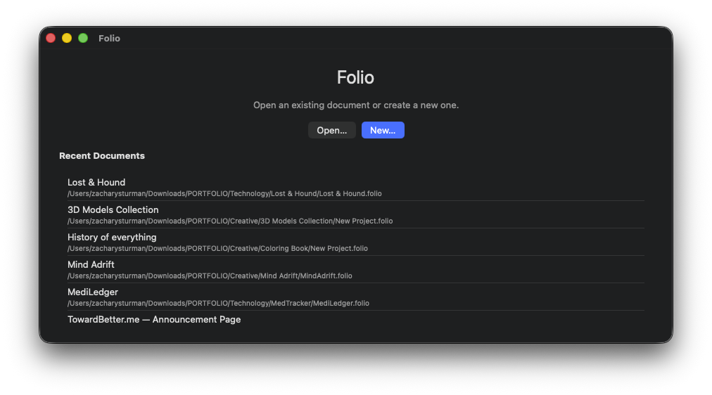 By this point the broad shape of the system had settled. I still wanted a structured project record. I still wanted one place to manage project and portfolio metadata. I still wanted the public-facing portfolio to stay close to the actual project data. The difference was that Folio packaged all of that into a macOS app that I could actually use end to end.