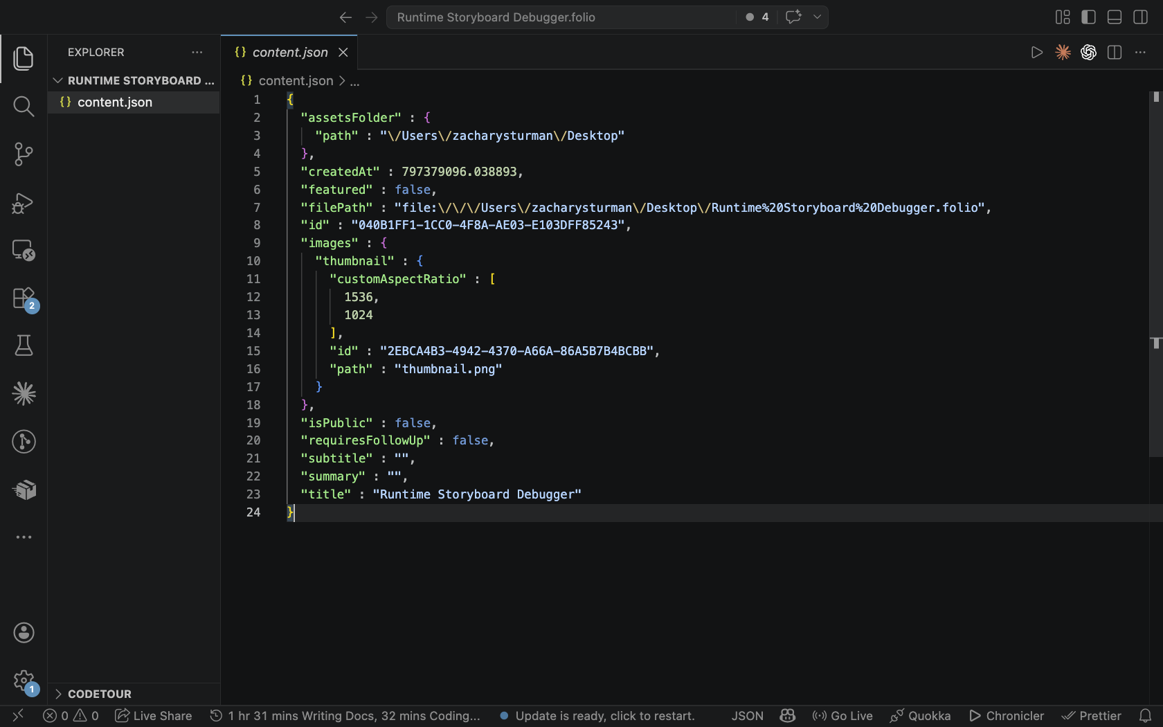 I liked _project.json because it was a simple, visible convention. If every project folder had a predictable metadata file, I could find those files easily, parse them, filter them, and use them elsewhere. That gave me a shared structure without requiring everything to live inside one opaque database. It also kept the metadata local to the project itself, which still feels like a strong instinct to me.