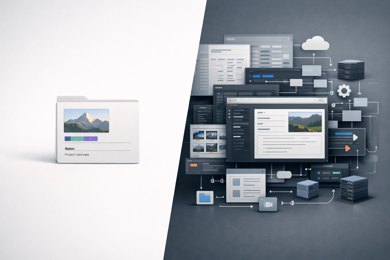 For a while I kept assuming the right answer was one system. One place to edit metadata, manage project context, hold media, keep local files connected, and feed the portfolio. Sometimes that instinct produced something useful. Other times it produced a bigger and bigger machine around a workflow that did not actually happen often enough to justify the maintenance.