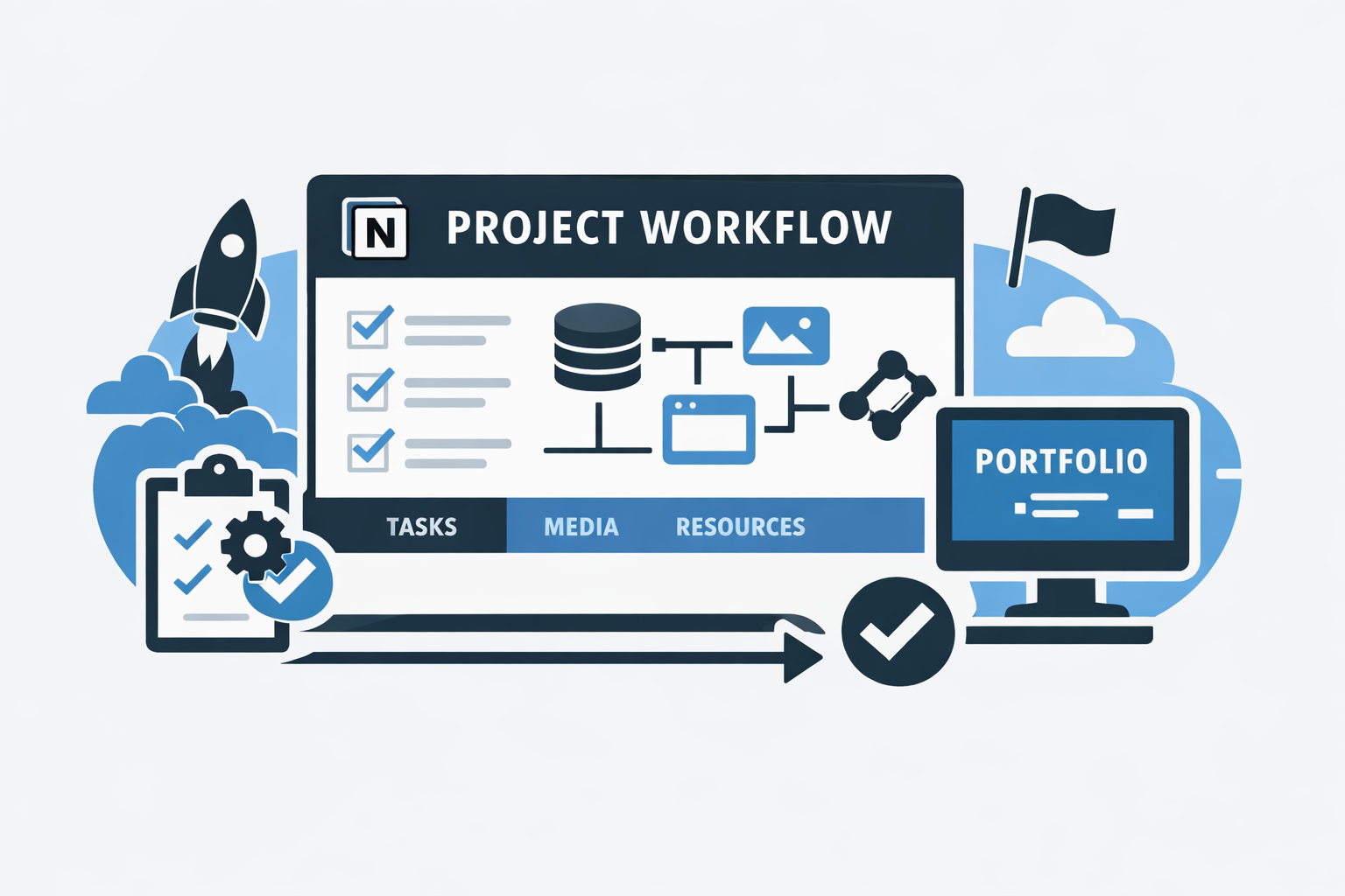 A Notion-centered project operating system that turns structured project data into an always-up-to-date portfolio.
